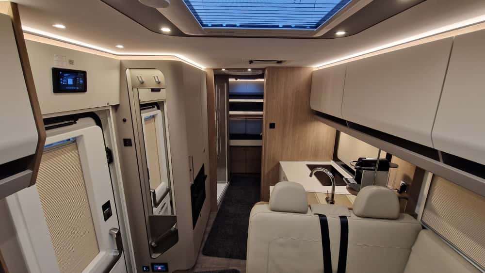 W tym modelu znajdziemy nowoczesny system z intuicyjnym sterowaniem elementów wyposażenia do kontroli pojazdu sterowany z pulpitu kierowcy lub wejścia. System multimedialny na który składają się dwa telewizory w części dziennej i sypialni, system stabilizacji pojazdu za pomocą hydraulicznych podpór, a także automatyczna markiza, potężnej mocy bateria wraz z przetwornicą na 230V.