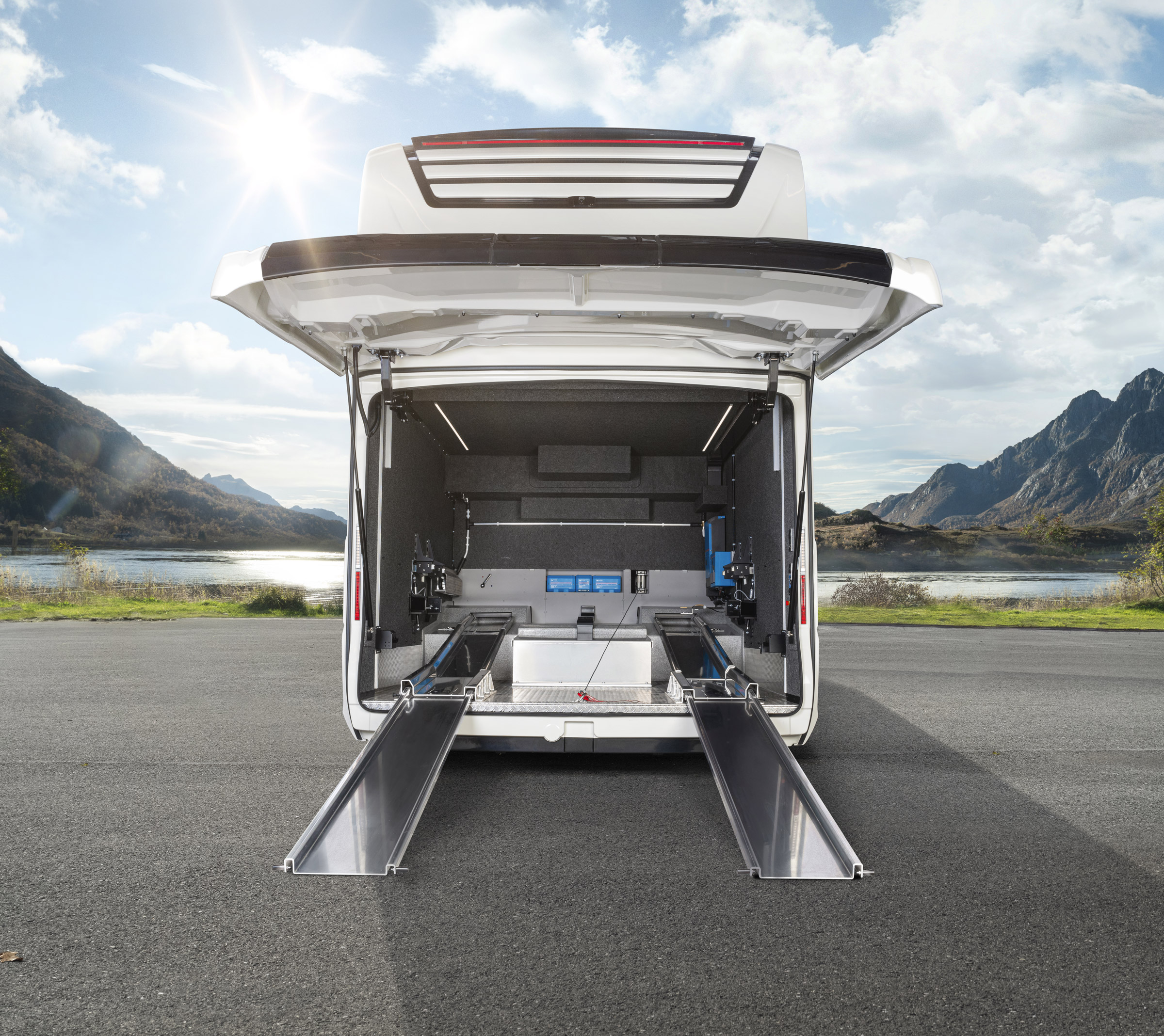 Palace Liner 110 GSB posiada wygodne i przestronne łóżko w tylnej części pojazdu oraz dużą kanapę w salonie którą również można zaadoptować na wypoczynek. Na wyposażeniu salonu znajdują się także m.in.: wysuwany elektrycznie duży telewizor z soundbarem oraz klimatyzacja. Kamper Morelo Palace Liner 110 GSB jest wyposażony w najnowocześniejsze rozwiązania technologiczne, takie jak: system nawigacji satelitarnej, system audio-video, kamery cofania, automatyczny system poziomowania, panele słoneczne, przetwornicę 230V oraz klimatyzację działającą bez podłączenia do sieci energetycznej.