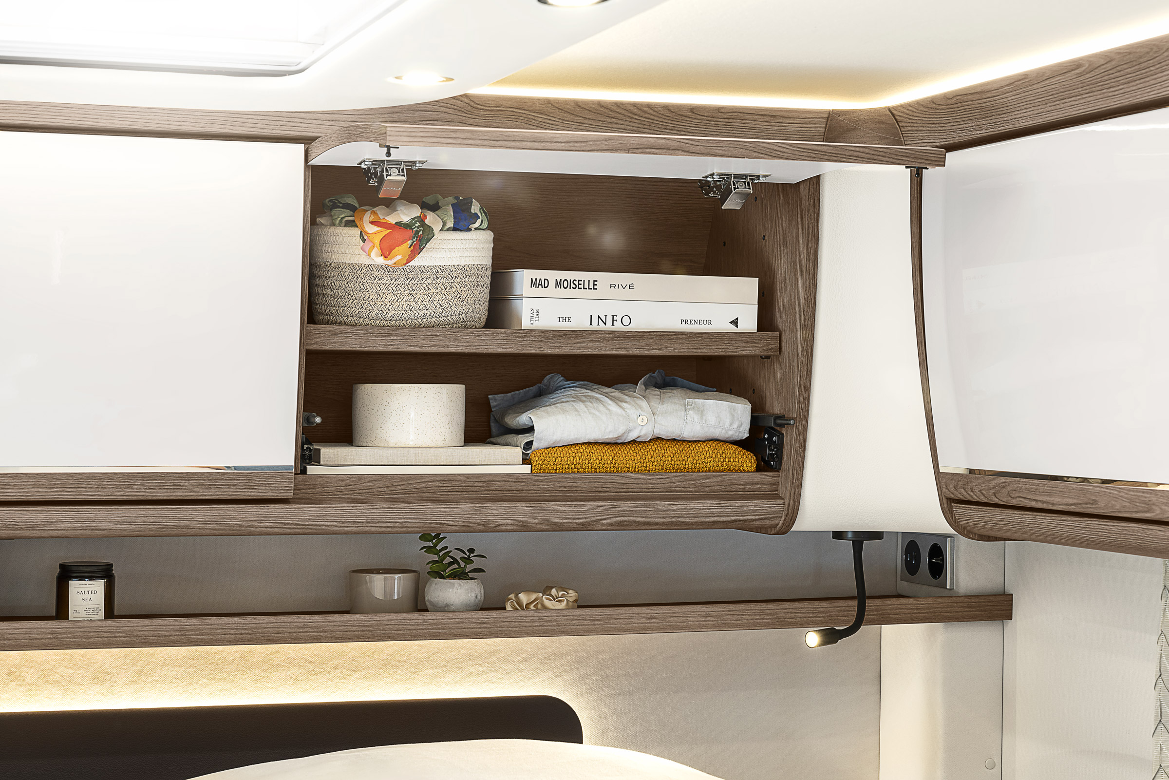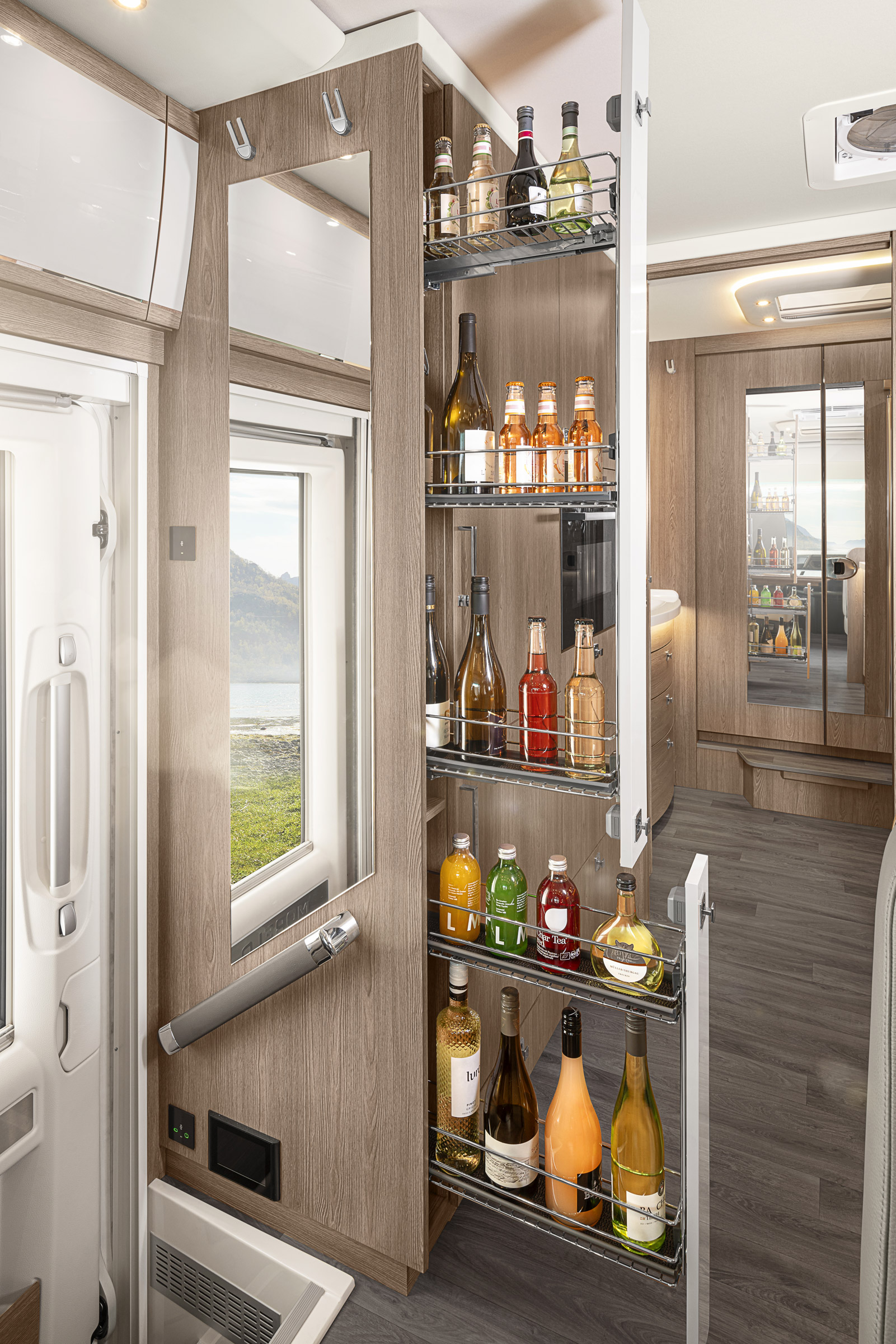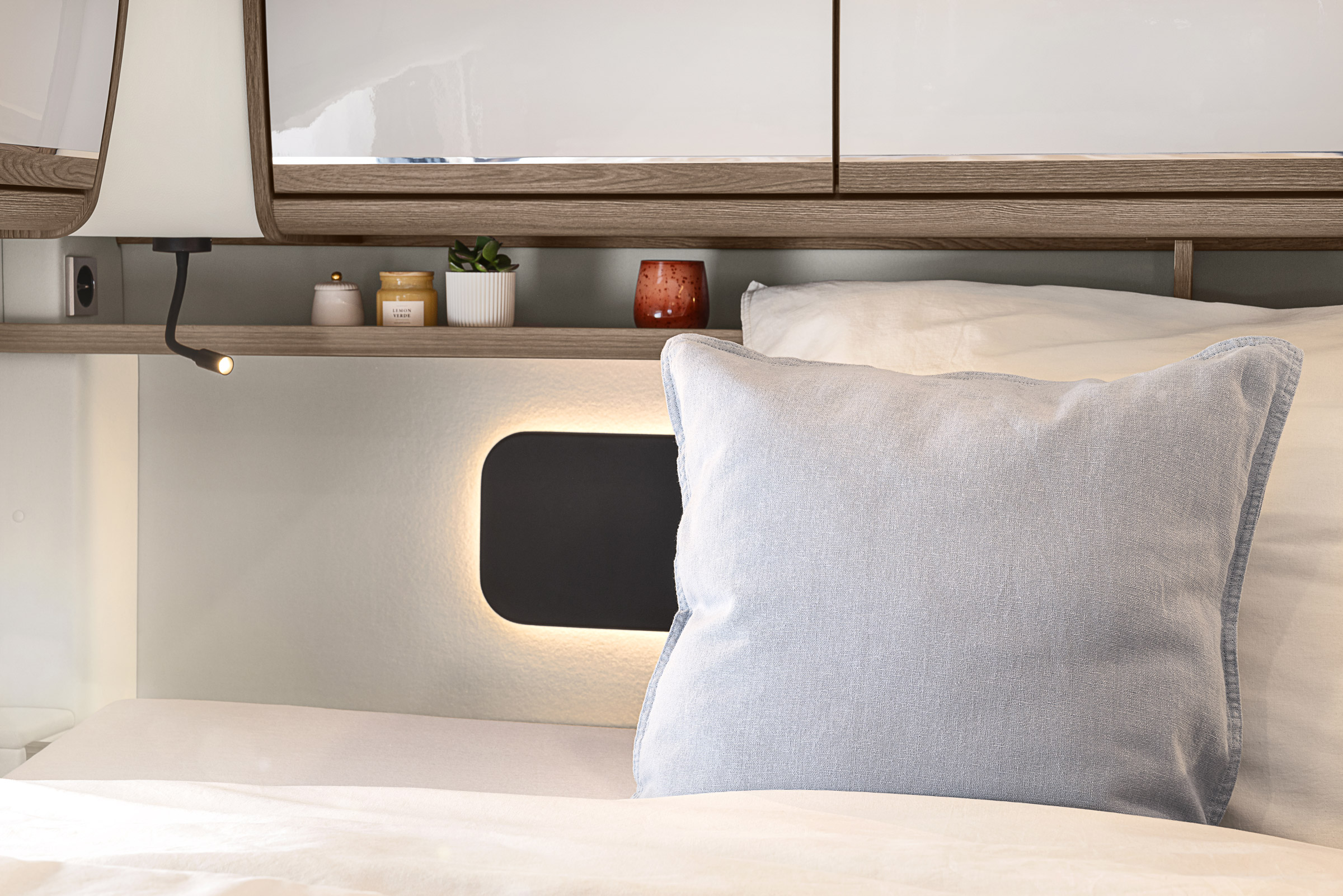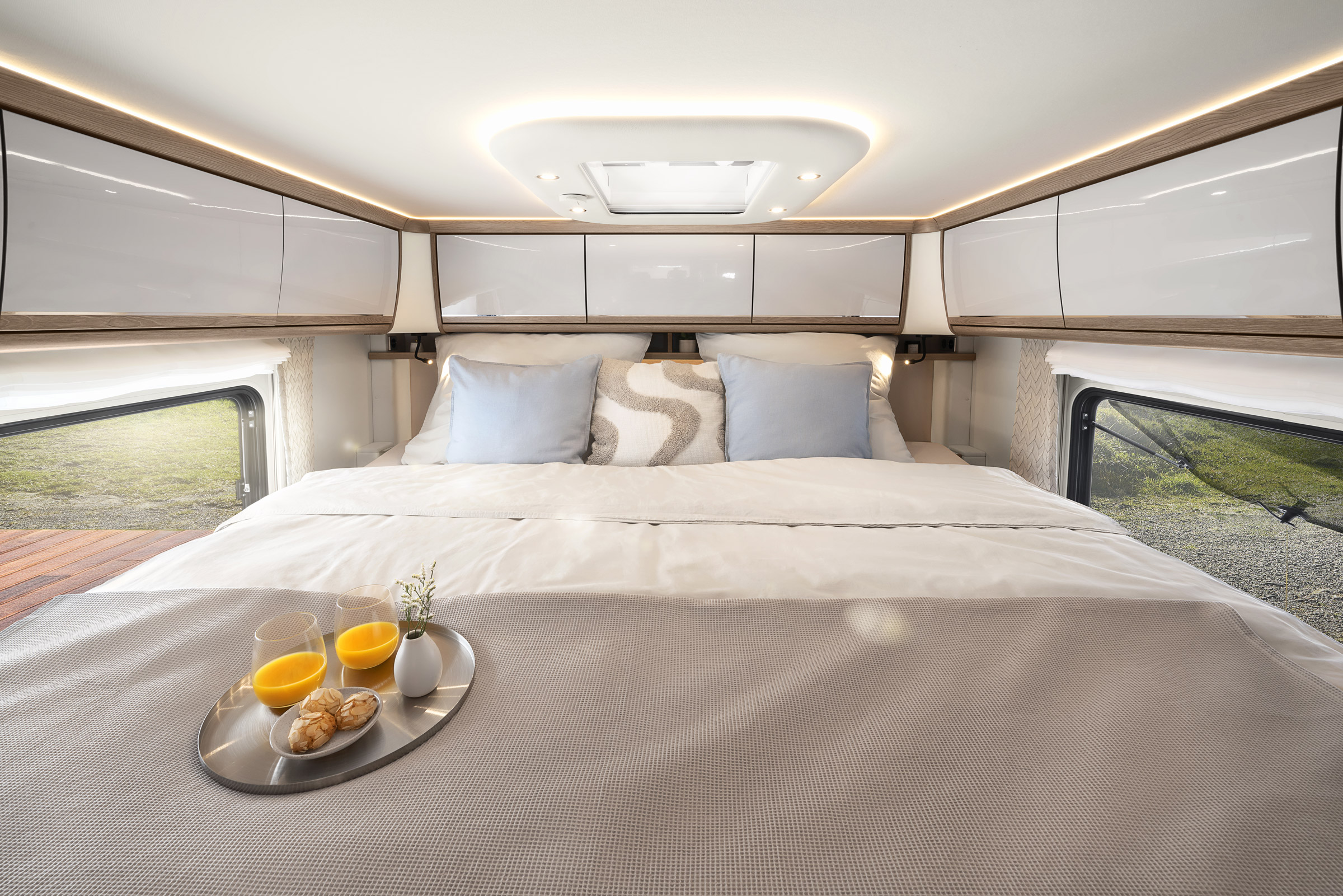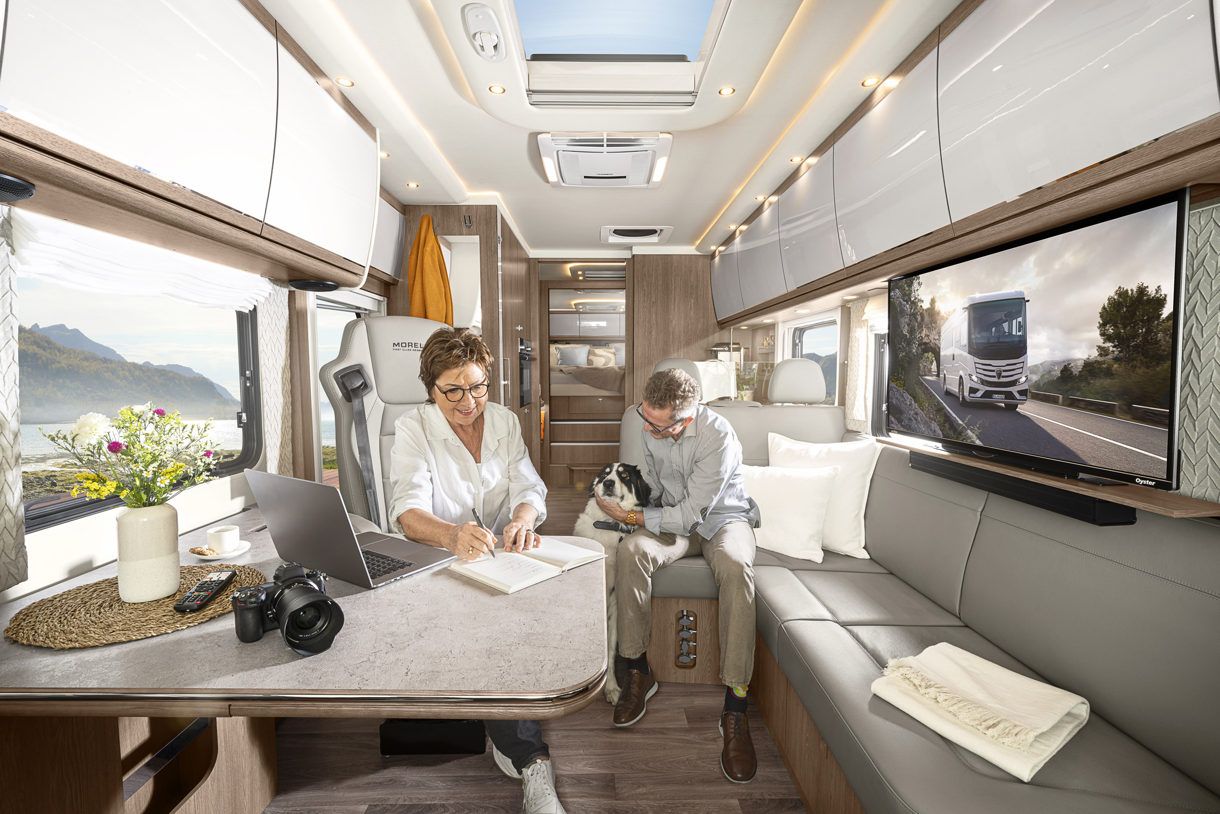 Wnętrze kampera Morelo Palace Liner 110 GSB wykonane jest z najwyższej jakości materiałów takich jak skóra, drewno i aluminium, co nadaje mu elegancki i nowoczesny wygląd. Model ten, to przede wszystkim przestronność, elegancja oraz funkcjonalność, które wspólnie zapewniają podróżującym maksymalny komfort i wygodę podczas długich podróży.